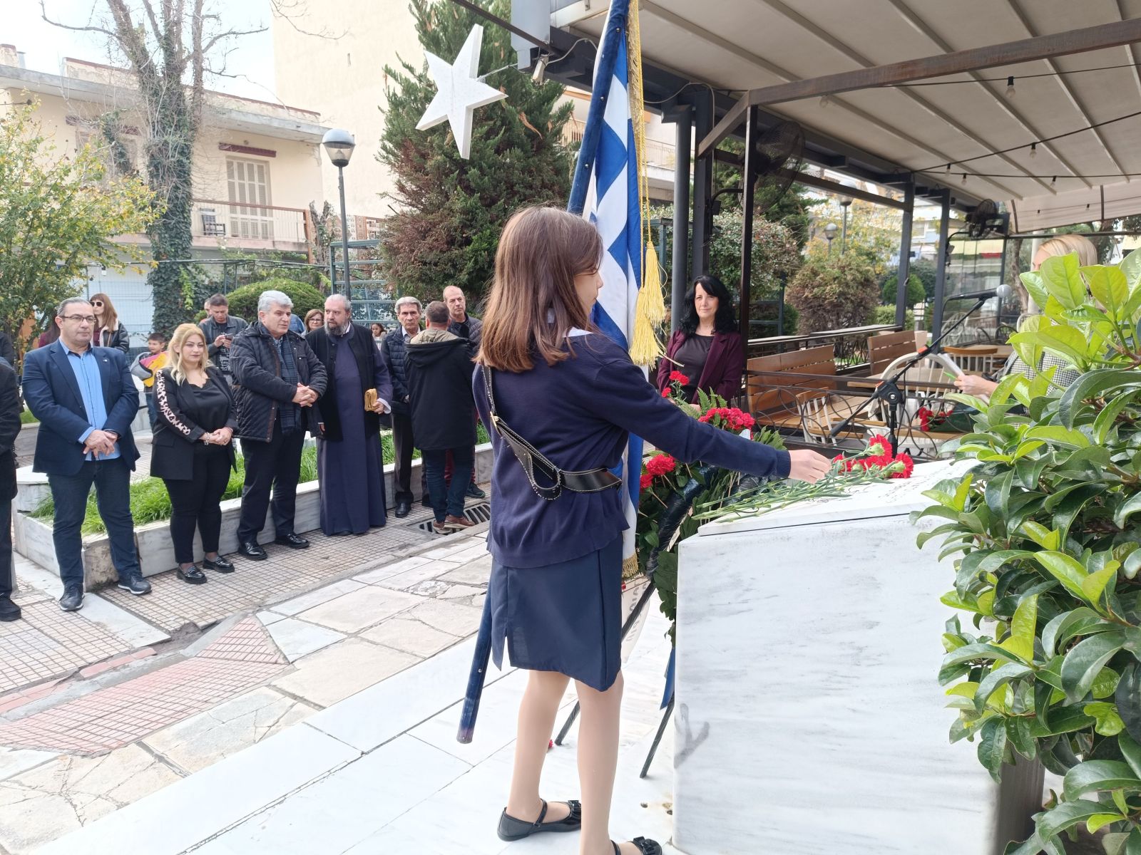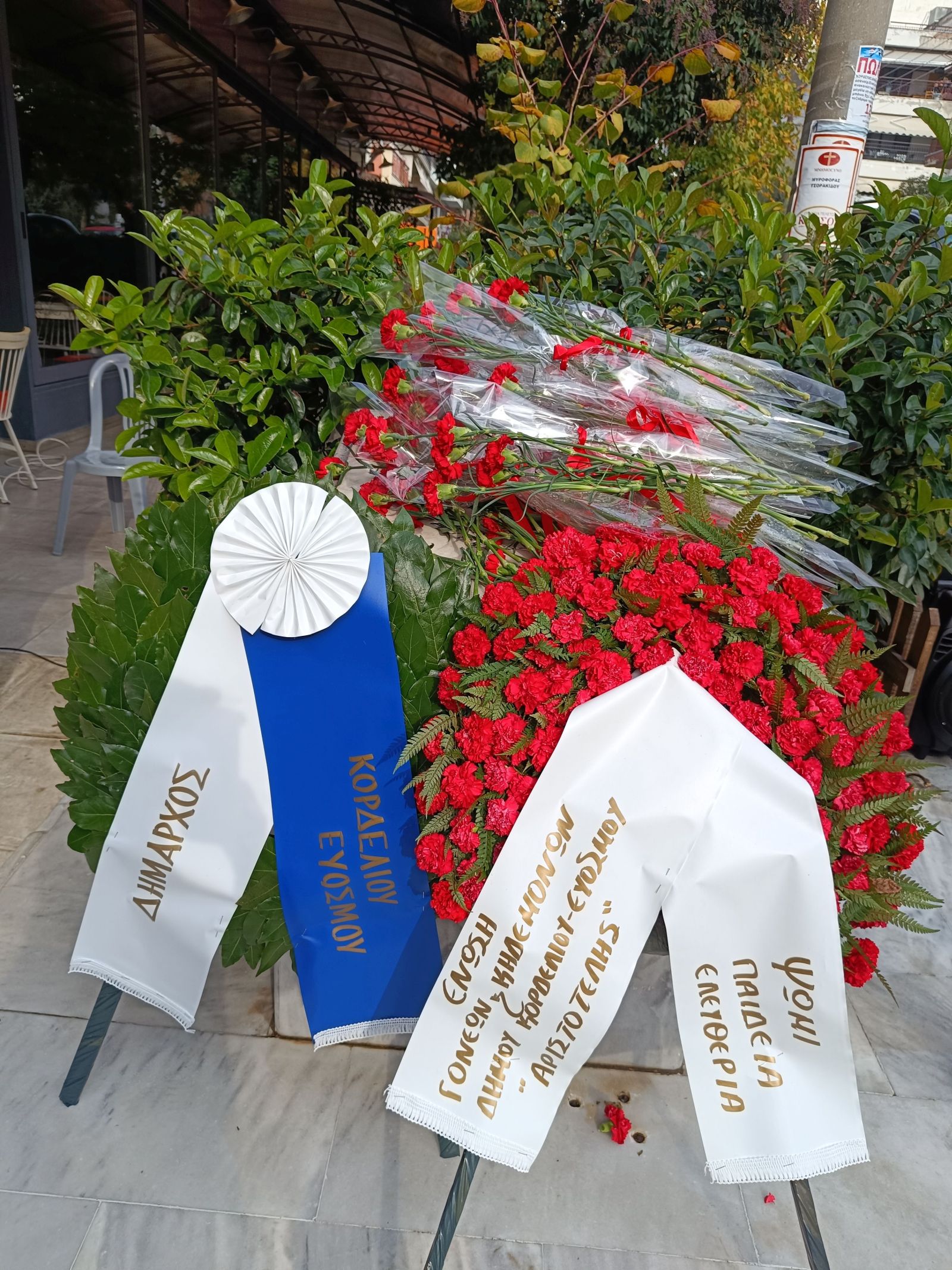 Ακολούθησε κατάθεση στεφάνων και λουλουδιών από τον δήμαρχο Κορδελιού – Ευόσμου, Λευτέρη Αλεξανδρίδη, τον πρόεδρο του Δημοτικού Συμβουλίου, Σάββα Ξενιτόπουλο, τους αντιδημάρχους, Γιάννη Γούσιο, Παναγιώτη Καμπαρούδη, Θεόδωρο Κατσούκα και Βασίλη Αϊβαζίδη, την πρόεδρο της Δημοτικής Κοινότητας Ελευθερίου – Κορδελιού, Έφη Καπνοπούλου, τους δημοτικούς συμβούλους Στάθη Καϊτετζίδη και Γιώργο Σταυρίδη, εκπρόσωπο της Ένωσης Γονέων και Κηδεμόνων Κορδελιού – Ευόσμου «Αριστοτέλης», εκπρόσωπο του Συλλόγου Σμυρναίων – Μικρασιατών Ελευθερίου – Κορδελιού «Αγία Φωτεινή» και μαθητές σχολείων.