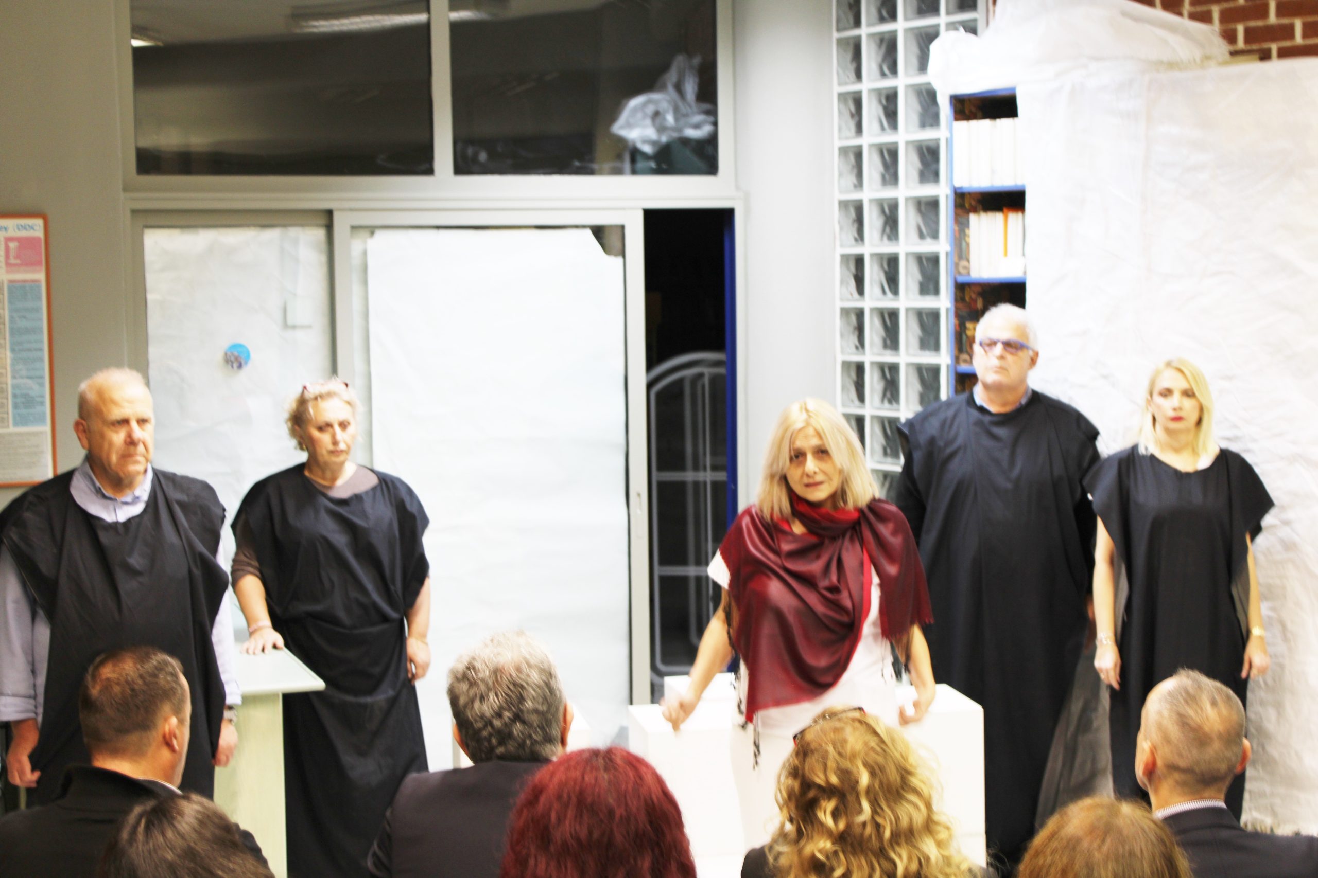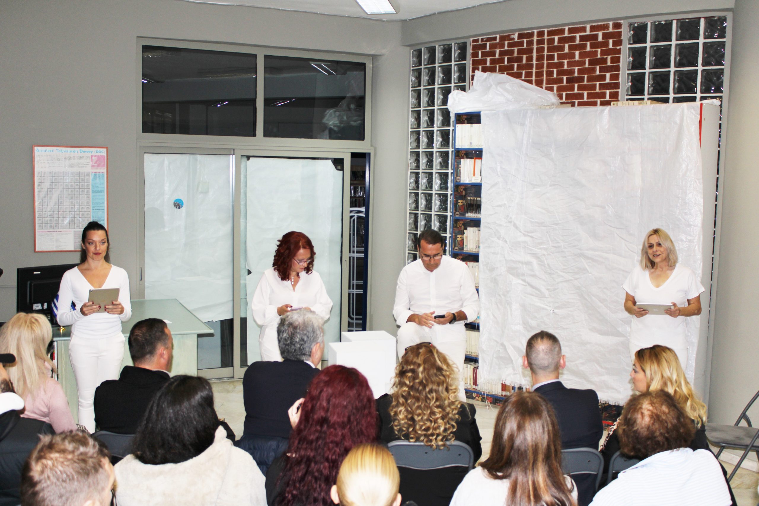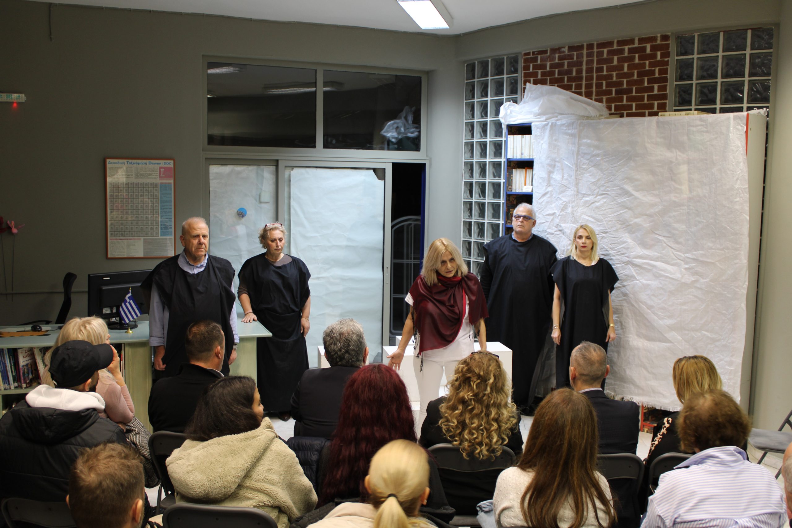 Μια ανεπανάληπτη εμπειρία θεάτρου, όπου ο γνώριμος και ανανεωμένος χώρος της δημοτικής βιβλιοθήκης Ευόσμου έγινε το φόντο και το σκηνικό ενός εμπνευσμένου θεατρικού έργου, επιφύλαξε για το κοινό η Αντιδημαρχία Παιδείας, Σχολικής Στέγης, Προσχολικής Αγωγής και Δραστηριοτήτων.