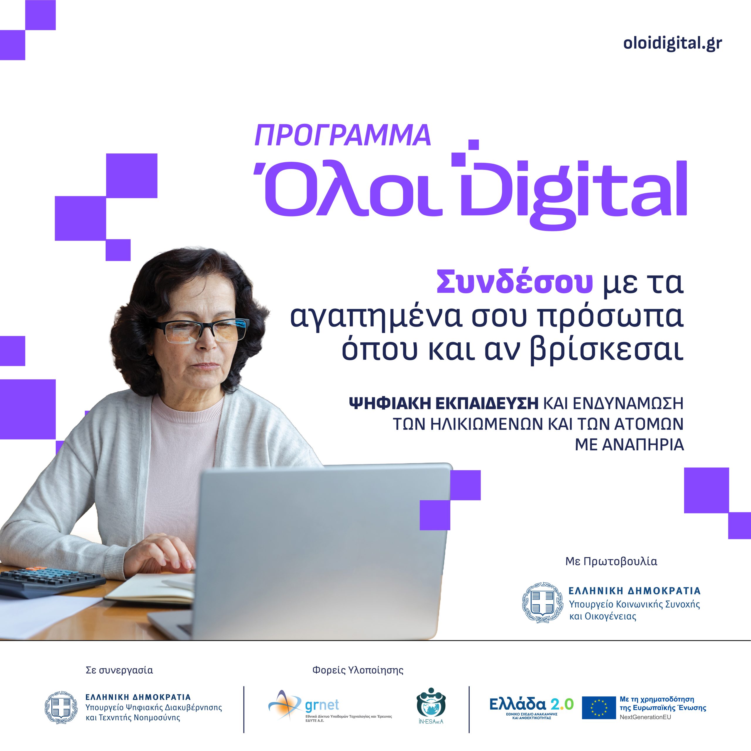Σημειώνεται ότι το πρόγραμμα υλοποιείται από το Υπουργείο Κοινωνικής Συνοχής και Οικογένειας με την υποστήριξη του Υπουργείου Ψηφιακής Διακυβέρνησης, σε συνεργασία με το Εθνικό Δίκτυο Υποδομών Τεχνολογίας και Έρευνας (ΕΔΥΤΕ) και το Ινστιτούτο της Εθνικής Συνομοσπονδίας Ατόμων με Αναπηρία και Χρόνιες Παθήσεις.
